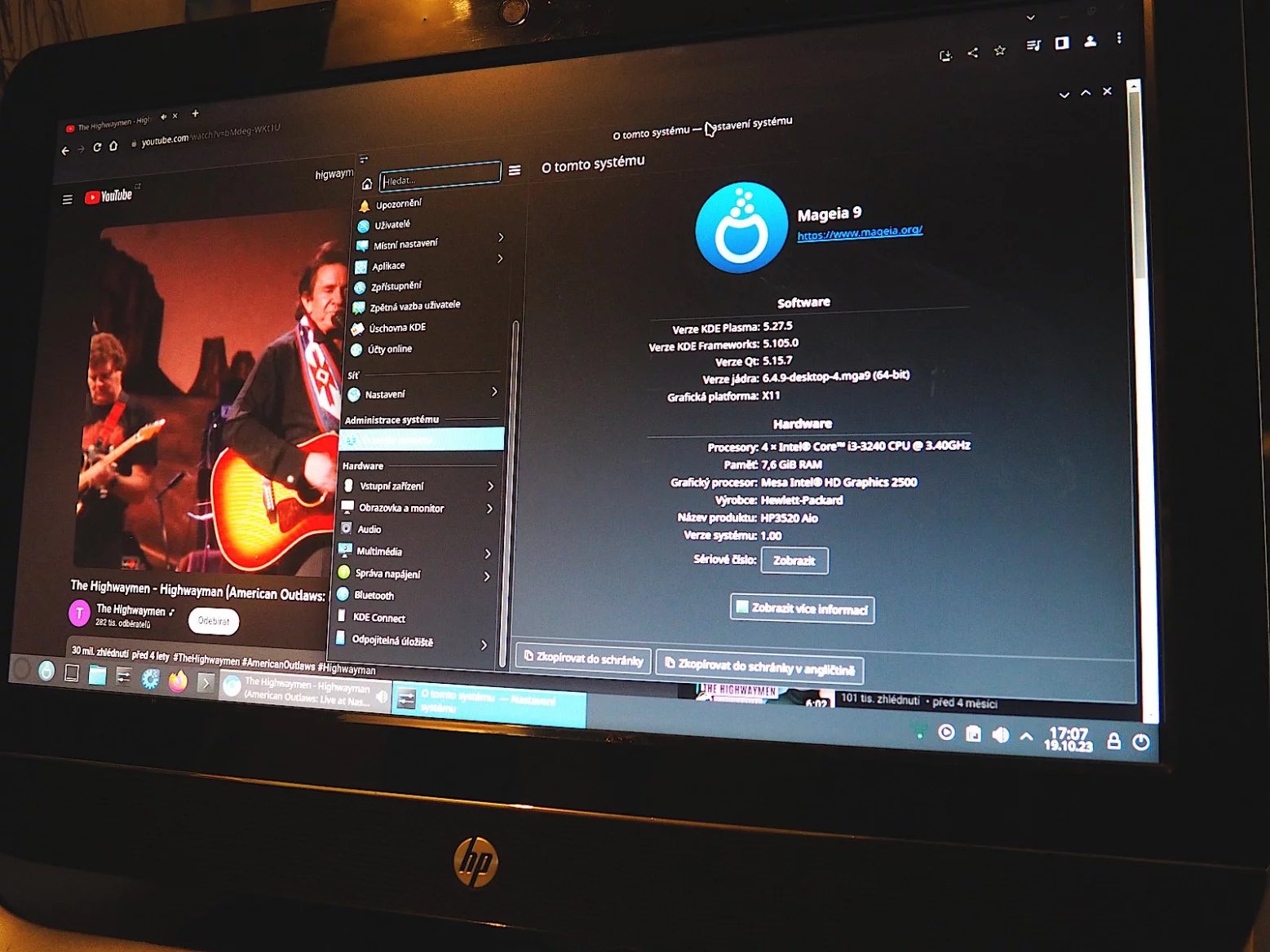 Nejprve konstatujme na typické korporátní platformě Intel to samozřejmé: téměř (:-) vše funguje. S CPU ani GPU nejsou žádné problémy, sítě včetně Wi-Fi jedou, předpokládám, že i bluetooth (nepoužívám). Webkamerka funguje též na jedničku. Snad jedině kdyby Plasma uměla nastavovat jas displeje, ale neumí. Řešení jsem zatím nenašel, nemám motivaci zjišťovat, zdali je to řešitelné, protože umístění tohoto stroje je takové, že beztak by běžel na maximální jas bez jakékoli potřeby regulace.