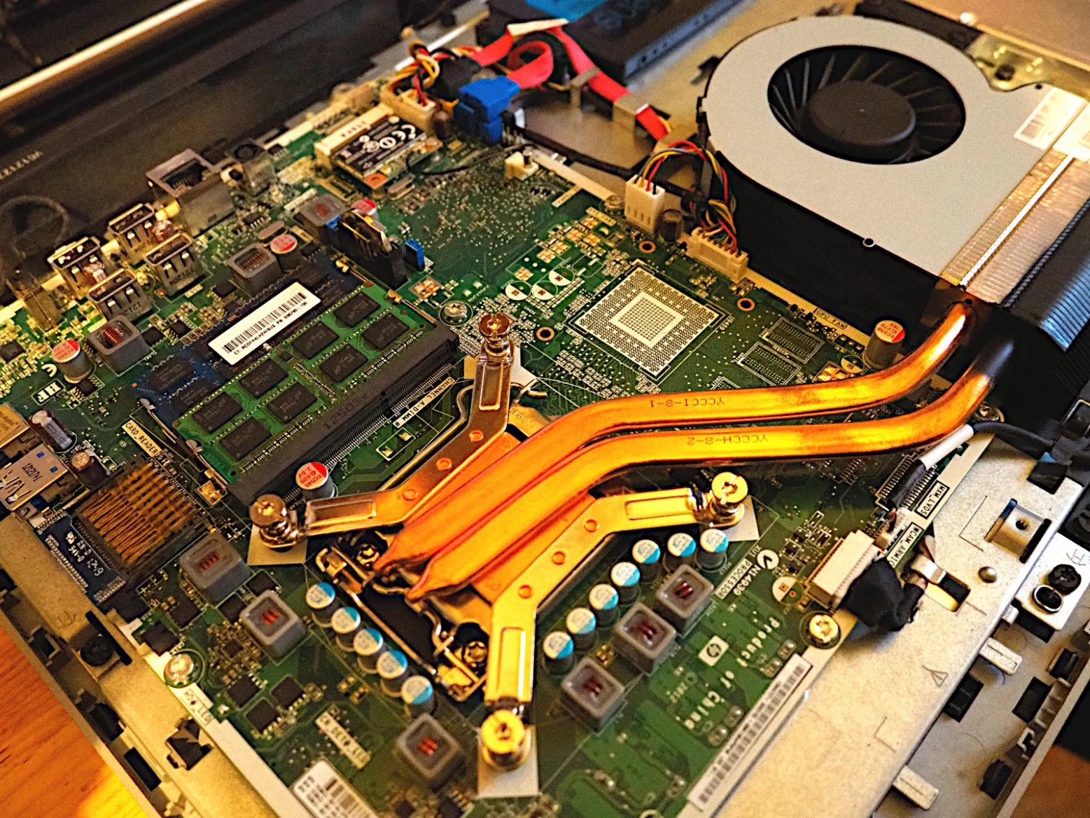 Stroj je uvnitř sic kondenzovaný na malou desku, ale jinak jde veskrze klasické PC s „paticí“ LGA1155, pročež teoreticky by mohl pojmout i nějaké Core i5 či vyšší – do TDP nejvyššího oficiální dodávaného CPU (moje Core i3) by se vešly i téčkové modely i5 či i7.
