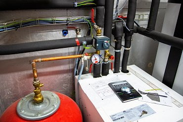 říká na úvod Petr Solnař. Odebírá nám teplo ze sálu a hromadí ho v nádržích na teplou vodu.
