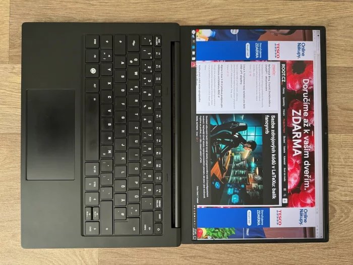 Pod displejem je klávesnice. Ta nemá numerický blok, na což budou mnozí naříkat. Já toto naopak kvituji, neboť mám rád vycentrované klávesnice, a i externí klávesnici mám 75%. Horní a dolní šipka je zmenšená, ale levá a pravá je plnohodnotná. Zbytek záleží na tom, jaké rozložení si vyberete a také, jaké popisky zvolíte, včetně těch českých nebo slovenských.