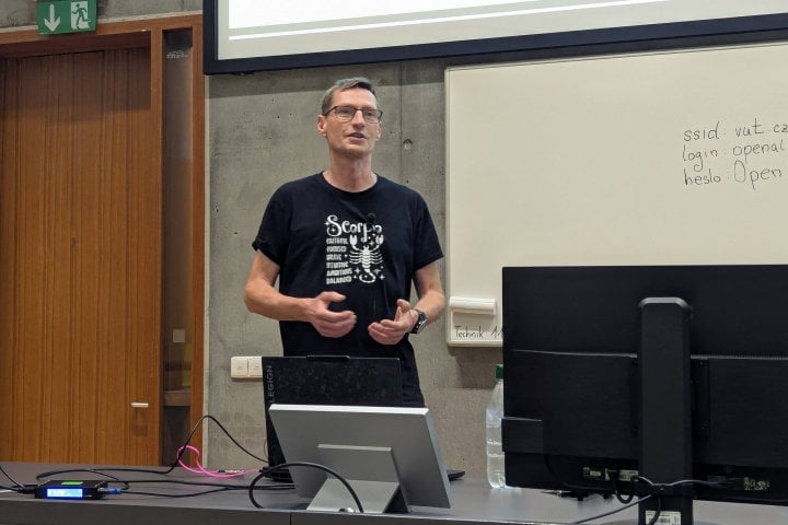 poznamenává Jakub Jirůtka. Displej je řízen deskou ESPink od českého výrobce LaskaKit. Jedná se o open hardware s dvoujádrovým procesorem ESP32.