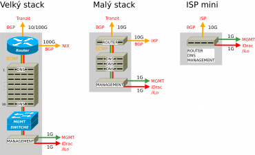 Velké DNS stacky v současnosti máme v plánu provozovat dva, oba v České republice a umístěné v datacentrech v Praze. Samozřejmostí je mít oba DNS stacky zapojené do peeringového uzlu NIX.CZ rychlostí 100 Gbps. Pro takto robustní řešení budeme používat hardwarový router, pro každý stack od jiného výrobce.