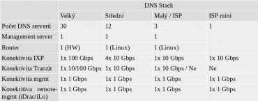Počty DNS serverů pro jednotlivé varianty stacku vycházely z následujících zjištění a předpokladů: