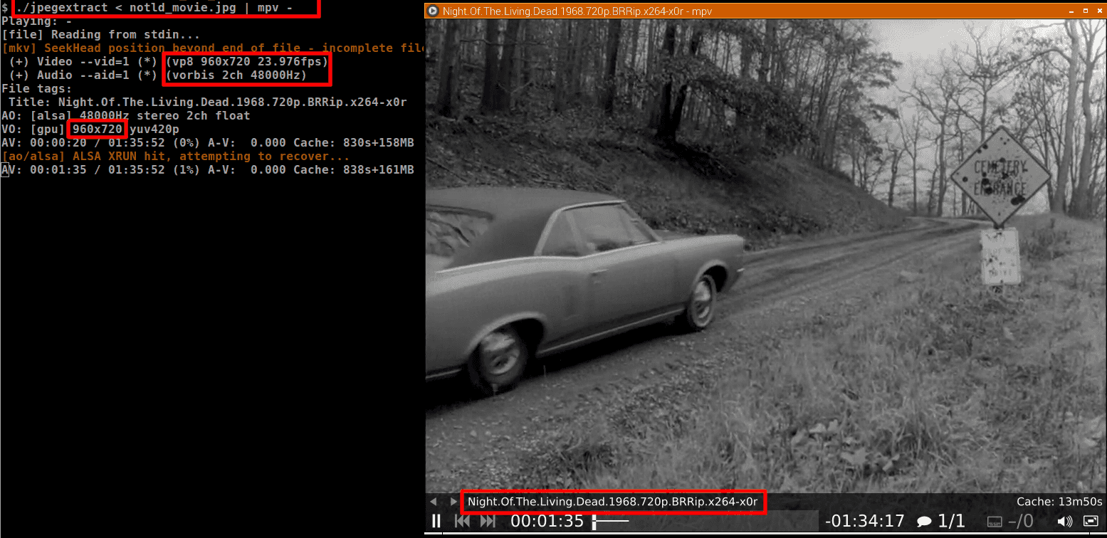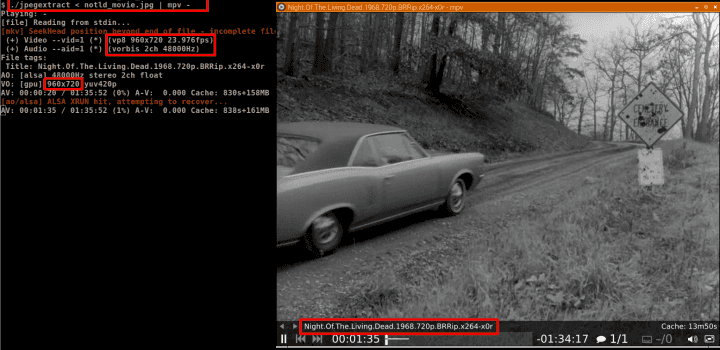 720p HD film z JPEG souboru a posílá ho na stdout, kde ho v reálném čase přehrává MPV.