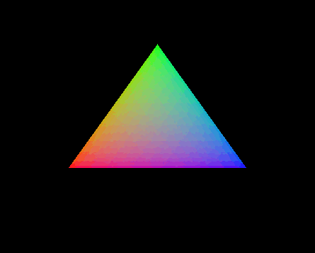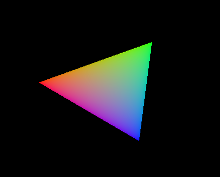 Pokud nespecifikujeme žádný parametr nebo specifikujeme --continuous, spustí se aplikace s kontinuální animací trojúhelníku, jak můžeme vidět po kliknutí na následující obrázek: