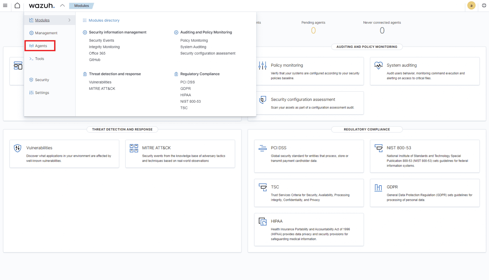 V tomto krátkém návodu jsem vám ukázal, jak si snadno a rychle nainstalovat Wazuh pomocí instalačního asistenta a jak nainstalovat agenta na server, kterých chcete sledovat.