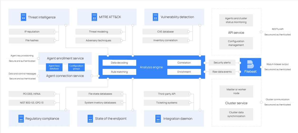 Server analyzuje a obohacuje data přijatá od agentů a v případě zjištění hrozeb nebo anomálií spouští výstrahy. Slouží také ke vzdálené správě konfigurace agentů a sledování jejich stavu.