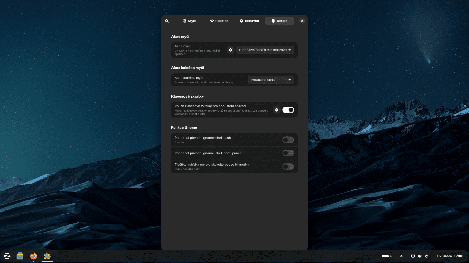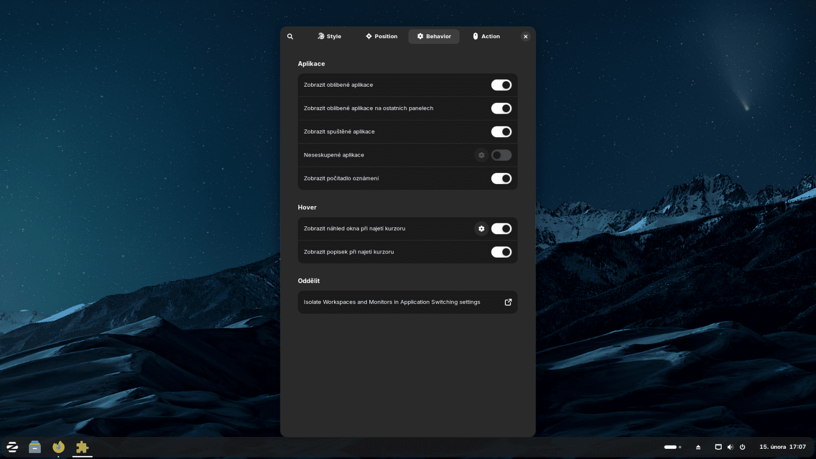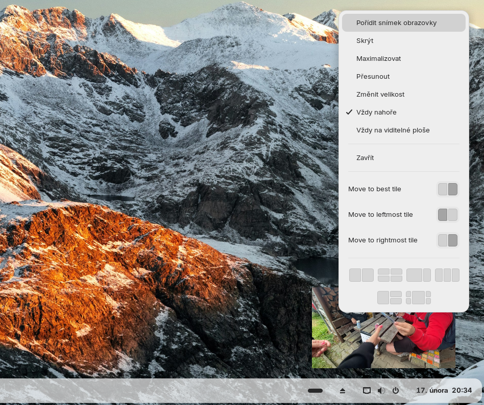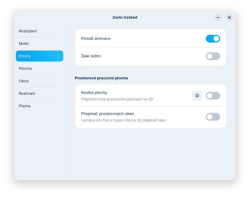 K výkonu se pak váže ještě jedna věc: lze vypozorovat připomínky na internetech, že zapnutí různých efektů desktopu ve stylu Compiz apod. vede k jejich neplynulému chodu na low-end GPU, specifiky starých iGPU v procesorech Intel. Já jsem toto samozřejmě zkusil, na HD 530 ze Skylake jsem trhání při běhu s rozlišením 1920×1080 nepozoroval. Nevylučuji ale, že na rozlišeních vyšších či iGPU ještě starších tento problém není, nicméně za mě bych doporučil tyto na zdroje hladové a subjektivně otravné efekty spíše nepoužívat. K dispozici ale jsou, i v základní Core verzi.
