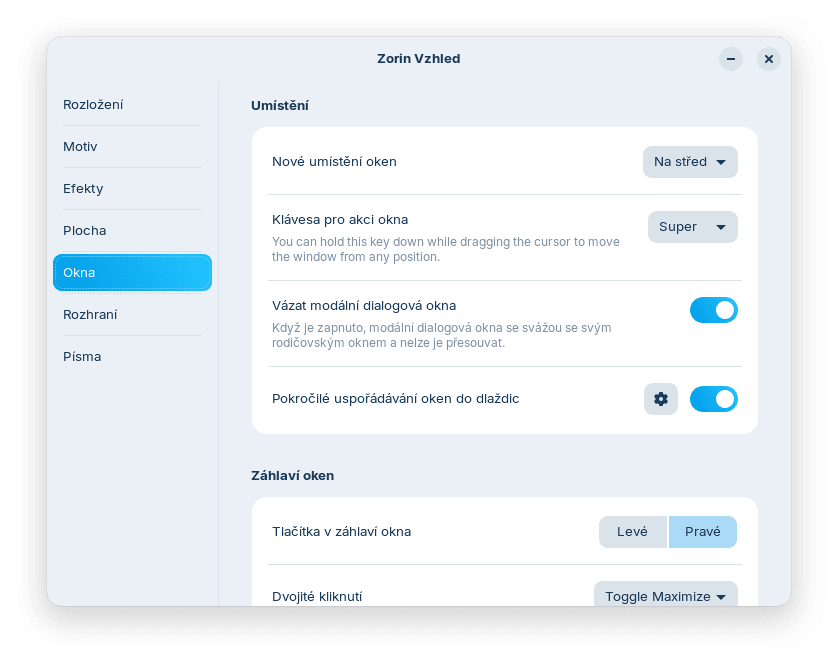 Co že to ta Pro verze přidává navíc? Třeba (budu zde používat marketingštinu Zorin OS) osm prémiových uspořádání desktopu, jako macOS, Windows 11, Windows Classic, ChromeOS, Compact panel, Ubuntu, elementary OS a Linux Mint. To je právě to, že nemusíte jako uživatel své GNOME ladit hromadami konfigurací a pluginů, které třeba vaše Fedora sama nepodporuje, u Zorinu to máte na jedno kliknutí, ale za 999 Kč. Volba je na uživateli, jestli mu to za to stojí.