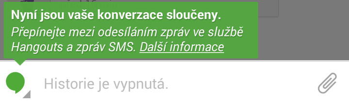 Významnou novinkou je sloučení konverzace prostřednictvím SMS a internetových zpráv prostřednictvím služby Hangouts. Již dříve bylo možné přes aplikaci odesílat SMS, přesto byly konverzace oddělené. S aktualizací na novou verzi jsou ve výchozím stavu konverzace sloučené, zároveň je ale možné vše navrátit do původního stavu nebo SMS funkcionalitu zcela vypnout. Původ zprávy na straně odesílatele i příjemce je odlišitelný. Při psaní zprávy je samozřejmě možné zvolit, jakým způsobem bude odeslána, přičemž je jasně viditelné, zda je kontakt aktuálně online. Žádná automatická preference podle stavu kontaktu však zavedena není.