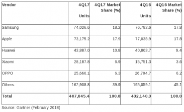 Podle společnosti Gartner Inc. celosvětové prodeje chytrých telefonů vůbec poprvé meziročně poklesly ve čtvrtém čtvrtletí 2017 a to na 408 miliónů kusů z 432 miliónů ve čtvrtém čtvrtletí 2016. Důvodem prý je, že kvalitní chytré telefony vydrží nyní déle a uživatelé je nemusí tak často měnit. A také chybí kvalitní, ale levné chytré telefony. Místo nich si uživatelé raději pořídí kvalitní „hloupý“ telefon.