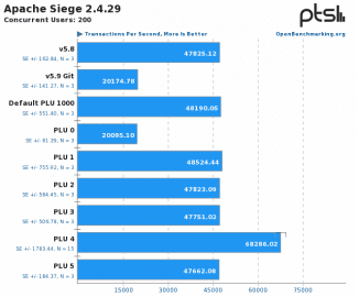 V podstatě nové férové chování snižuje nejdelší latence a pomáhá v případě přetíženého systému, kdy se například watchdog nemůže nikdy dostat na řadu. Zároveň však férové chování může v některých případech zhoršit průměrnou latenci nebo propustnost. Tento problém řeší nová záplata, která zavádí měnitelnou „míru neférovosti“ /proc/sys/vm/page_lock_unfairness (v grafu PLU). Uživatel tak bude moci upřednostnit nízké latence (nízké PLU), nebo propustnost (vysoké PLU). Ve výchozím stavu bude mít hodnotu 5 a to vypadá v testech dobře.