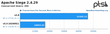 Michael Larabel ze serveru Phoronix testoval výkon jader 5.0–5.9 a všiml si podstatného propadu výkonu v jádře 5.9. Propad je vidět například v testu Apache. Bisekce vedla na záplatu opravující férové zamykání stránek v paměti, kterou zařadil Linus Torvalds. V e-mailu Linus pěkně vysvětluje, co záplata dělá a jak mění chování fronty procesů čekajících na zamčenou stránku.
