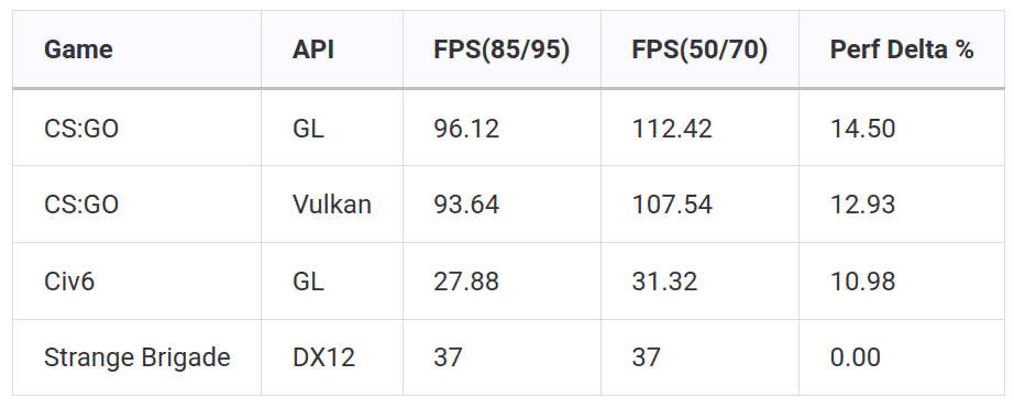 Syed navrhuje, aby bylo tyto hodnoty možné měnit. A ukazuje, že jejich snížení na například 50 a 70 zvýší výkon v CS:GO o asi 15 %. Ale patrně stoupne spotřeba. Uživatel by mohl použít například nástroj GameMode ke změně hodnot jen po dobu hraní her.
