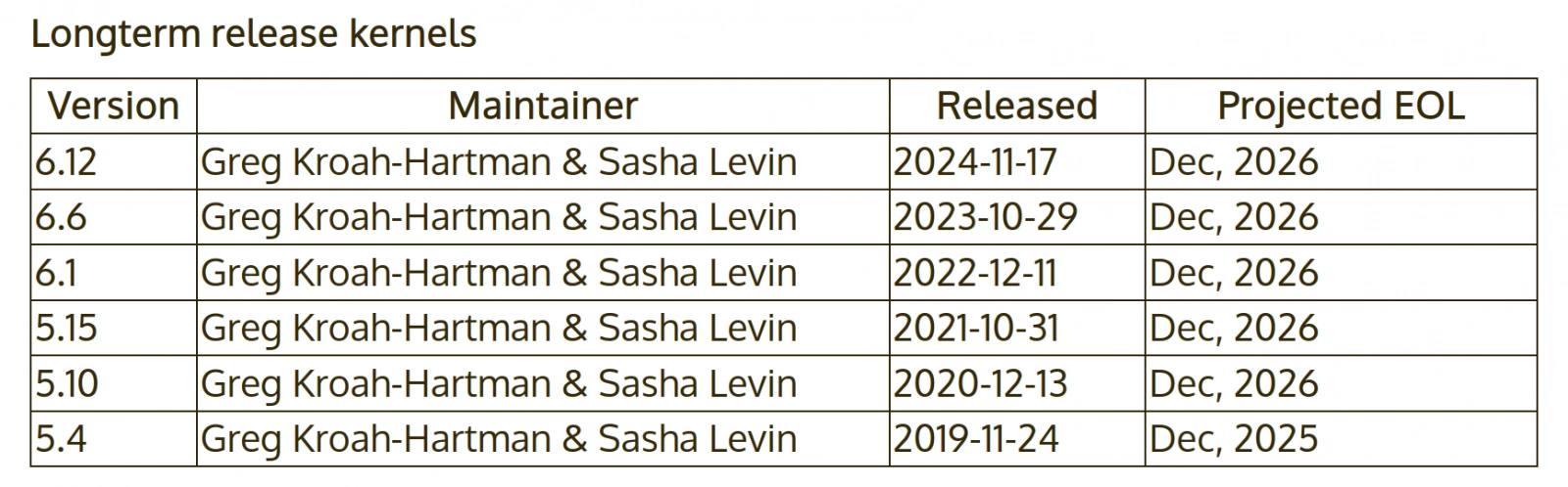 Jádro 6.12 se včera stalo oficiálně LTS jádrem s dlouhou podporou. Podpora je zatím plánována jen na dva roky do prosince 2026. Pak záleží na podpoře a zájmu dodavatelů a výrobců hardware i software.