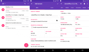 Pokud na Androidu stahujete torrenty, neměl by vám uniknout nový klient LibreTorrent. Vychází z knihovny libtorrent, takže toho umí celkem hodně a nechybí podpora všech důležitých protokolů a technologií jako DHT, PeX, UPnP, NAT-PMP, µTP atd. Zaujme také podpora stahování přes Tor. Toho ale raději příliš nevyužívejte, za a) to není tak bezpečné a za b) to značně vytěžuje síť Tor.