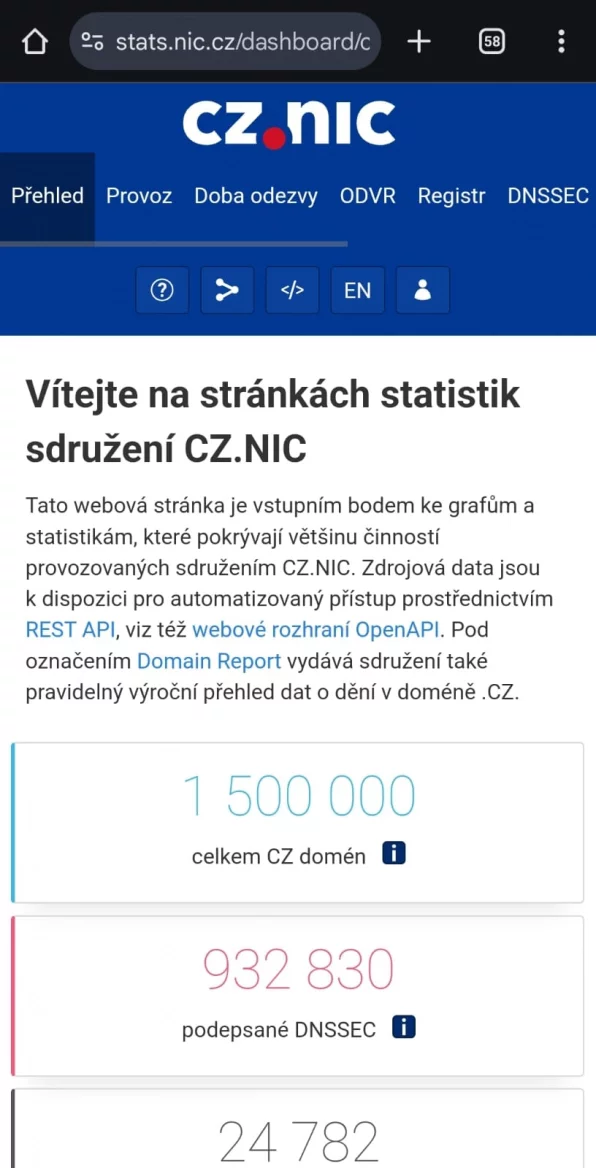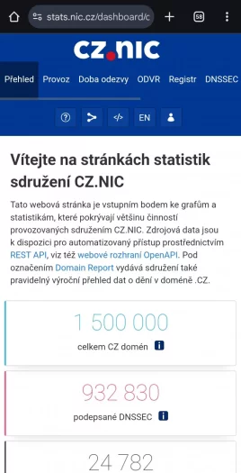 Včera chvíli před půlnocí počet domén s koncovkou .cz překonal hranici 1,5 milión. Aktuálně je to asi o 450 méně, protože některé domény byly zrušeny, ale jedná se o další rekord.