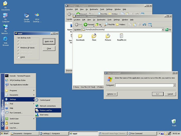 Naopak je možné využít nějakou linuxovou distribuci a upravit ji uživatelům tak, aby se cítili jako doma. Jednou z možností je Q4OS, o kterém píše Sofpedia. Jde o distribuci postavenou na Debianu, která jako prostředí používá Trinity DE, tedy klon KDE 3. Celé prostředí je nastaveno tak, aby pokud možno co nejvíc připomínalo Windows XP a zdá se, že se mu to docela daří. Zatím jde o vývojovou verzi, otázkou je, jestli je vlastně o něco takového reálný zájem.