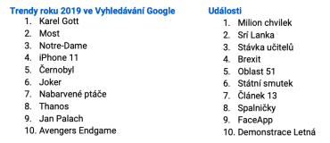 Jeho jméno lidé zadávali do vyhledávače Googlu tak často, že se na chvíli stal dokonce jednou z nejvyhledávanějších osobností na světě. Do žebříčku trendů se letos promítla ještě jedna smutná událost, a to jarní požár pařížské katedrály Notre-Dame v Paříži.