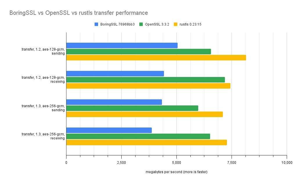 O knihovně Rustls se původně mluvilo jako o moderní knihovně TLS napsané v programovacím jazyce Rust, která zaručuje paměťovou bezpečnost. Kromě bezpečnostních výhod, které z toho plynou, nyní knihovna dosáhla i toho, že je rychlejší než OpenSSL i BoringSSL.